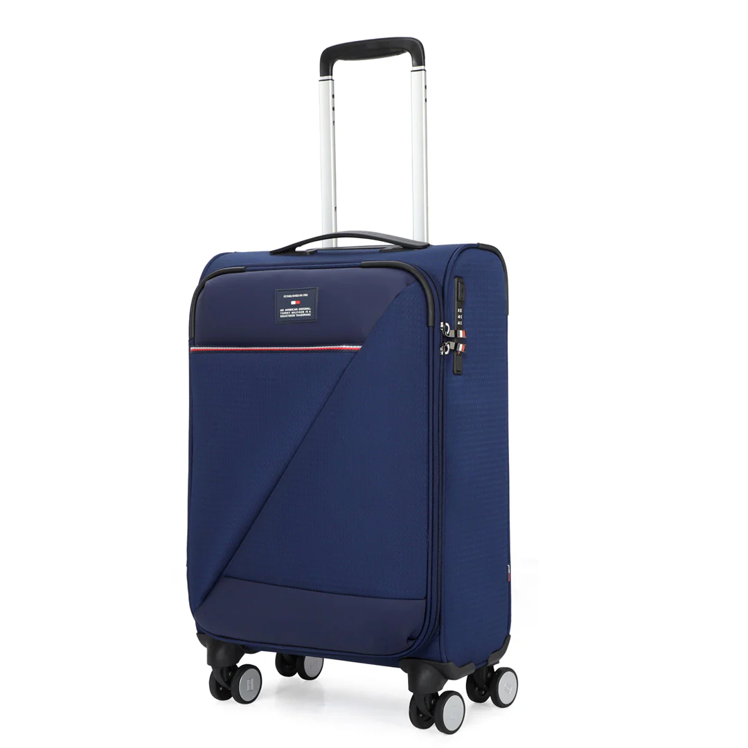 Tommy Hilfiger's San Diego Soft Luggage is designed for the modern traveler, with water-resistant fabric, a slim telescopic handle, and 360° branded wheels for effortless rolling. Secure your belongings with anti-theft zippers and a TSA lock. Glide through your journeys with this versatile and stress-free luggage.